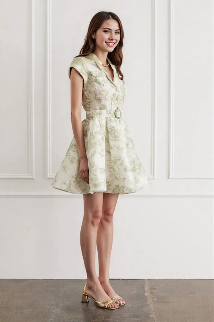 Button Down Short Dress with Open Back in Adorned in Aranjuez