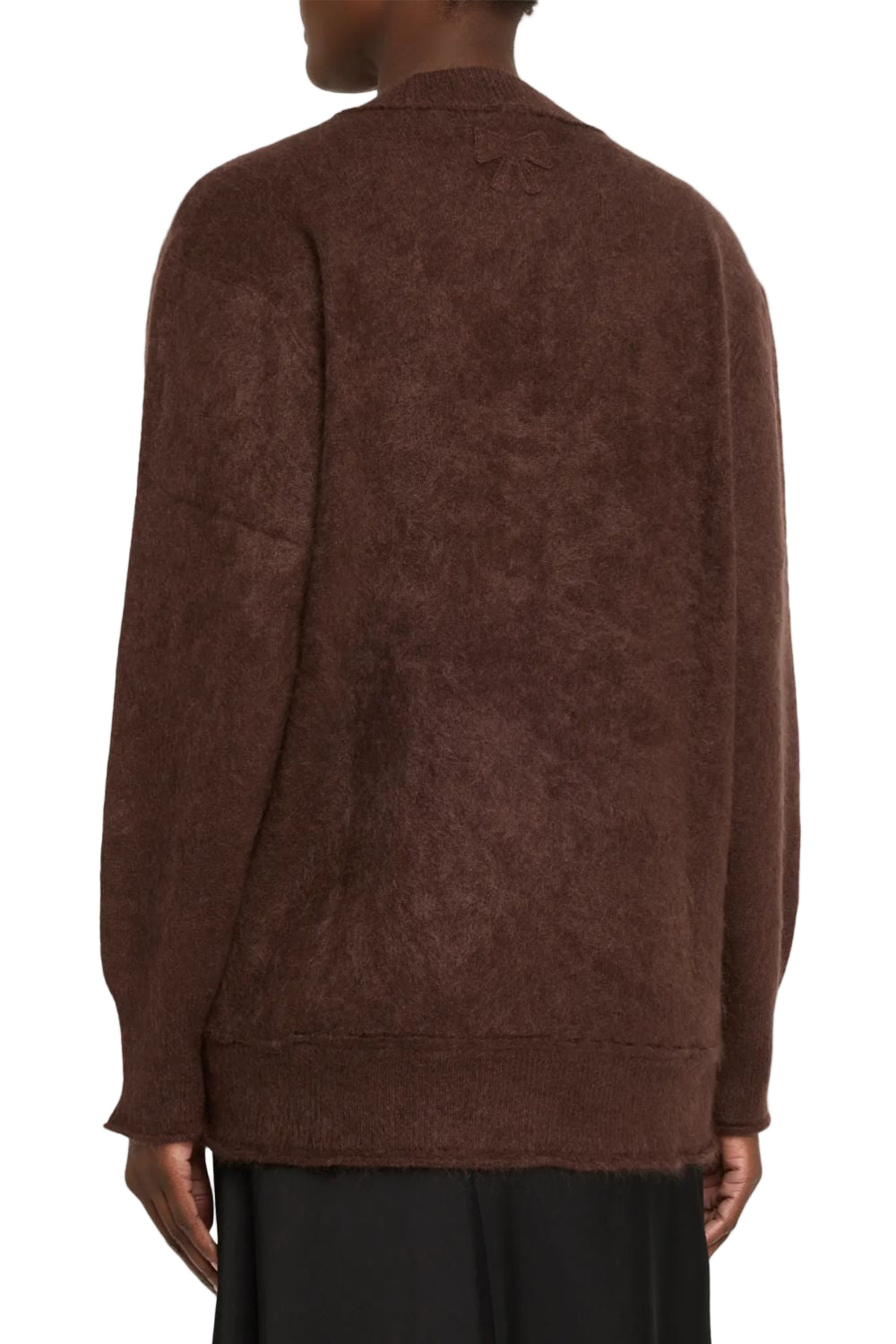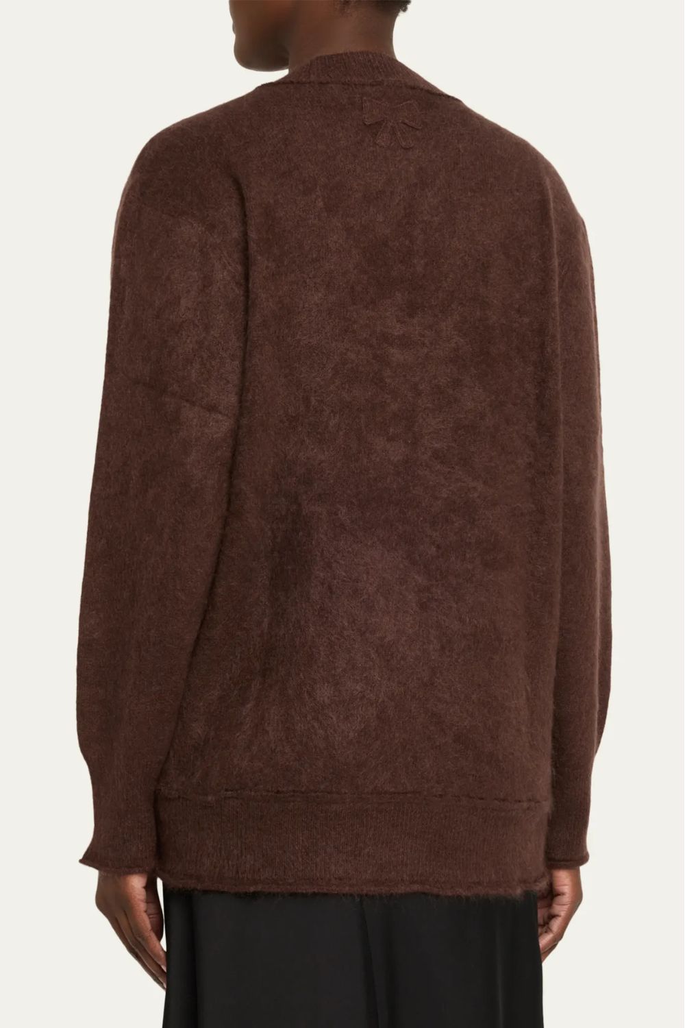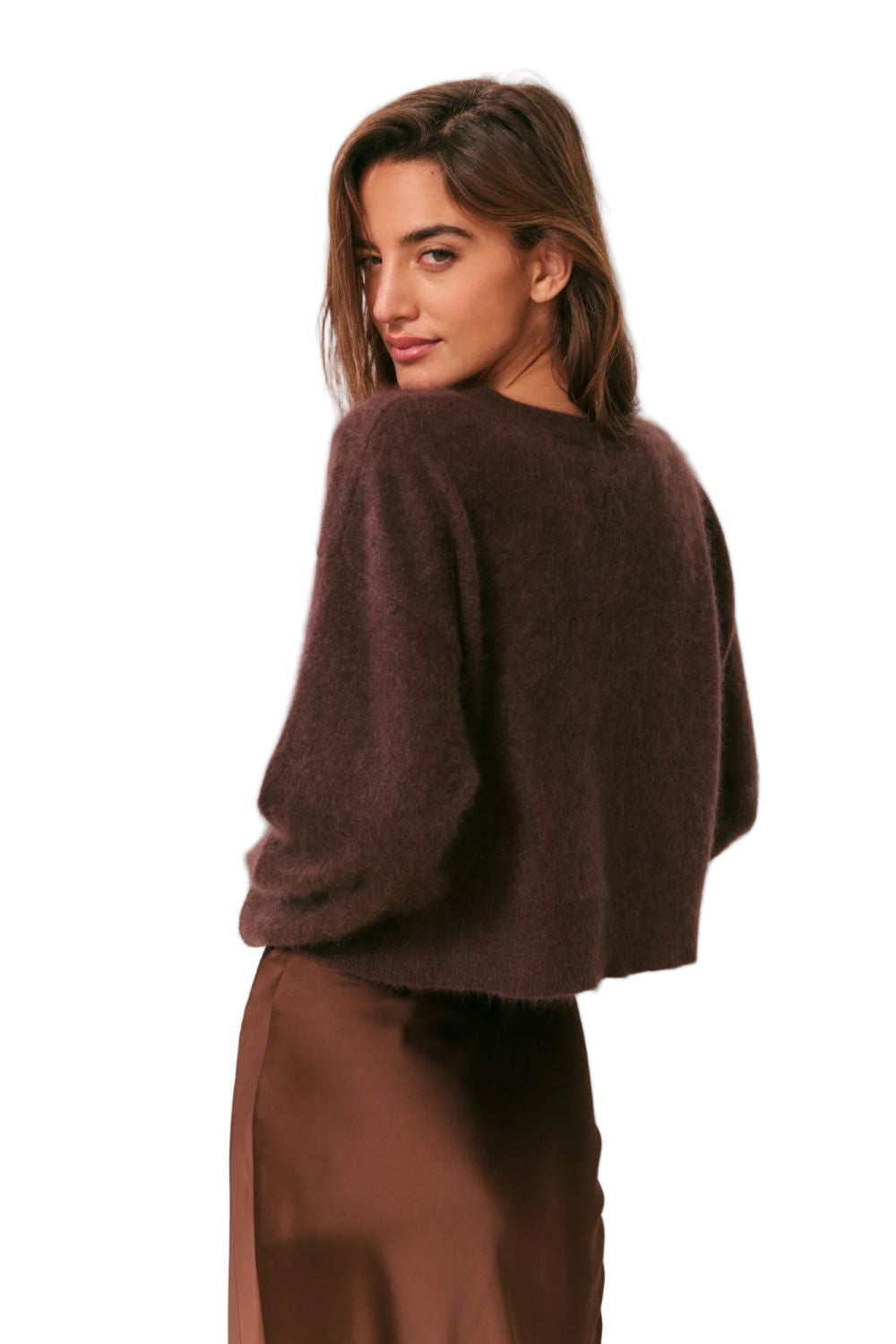 Satin Wool and Silk V-Neck Long Sleeve Top