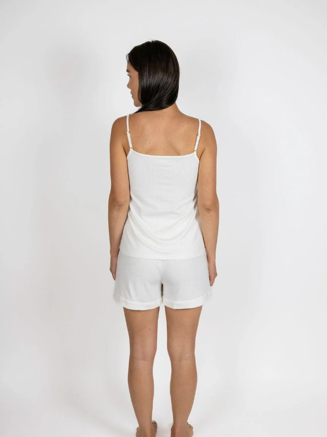 Cannes Pinstripe Short Tank and Short PJ Set in Off-White