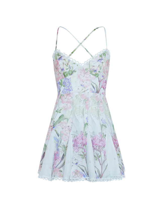Marlene Short Dress in White Botanic