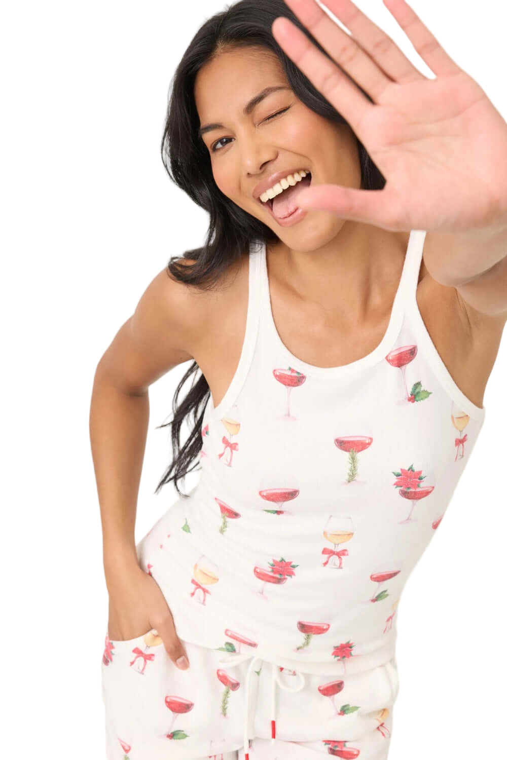 Gisele Shortie Printed PJ Set in Ski Chalet Ivory/Pine