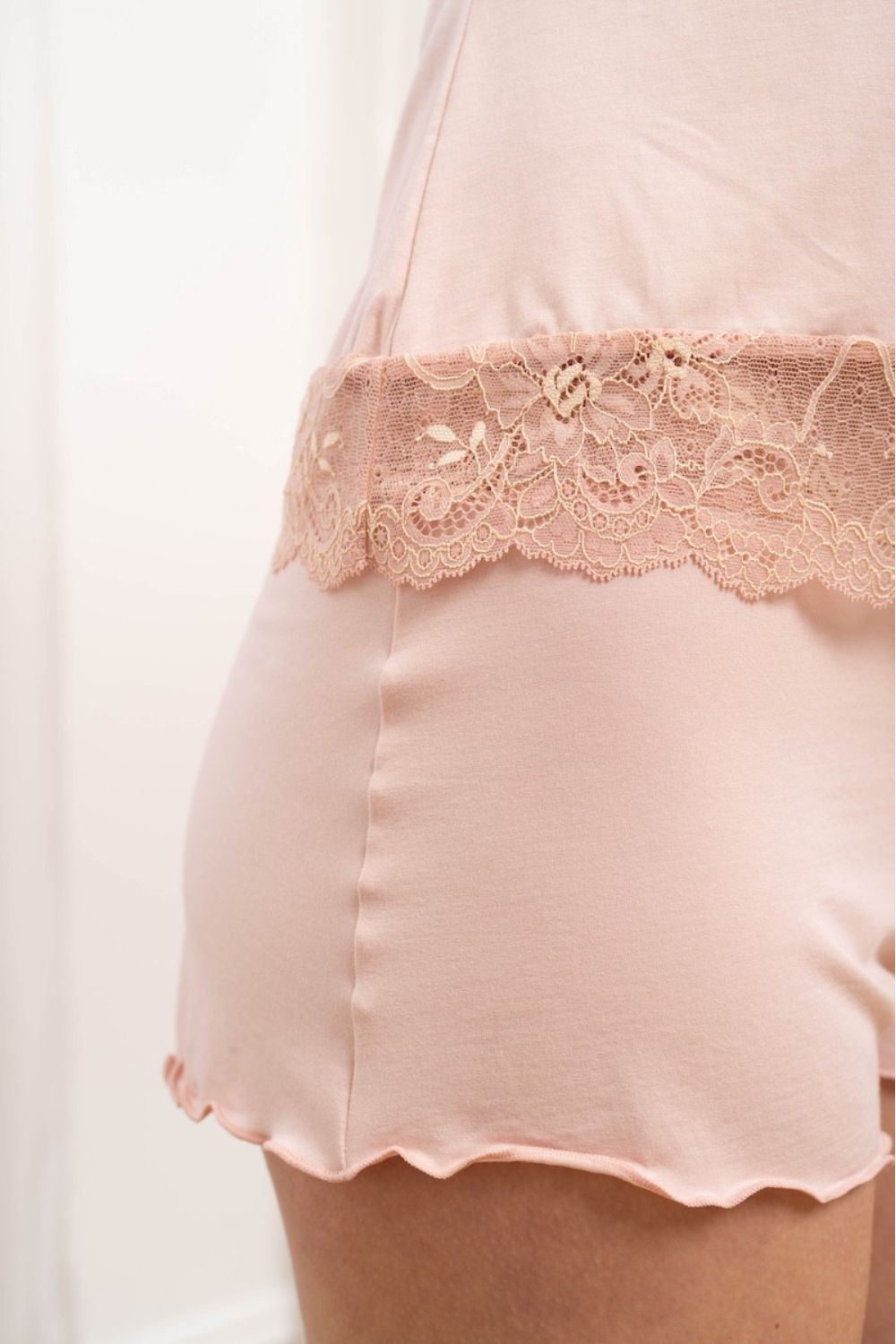 Modal Cami with Lace Trim and Short Set in Pink Sand